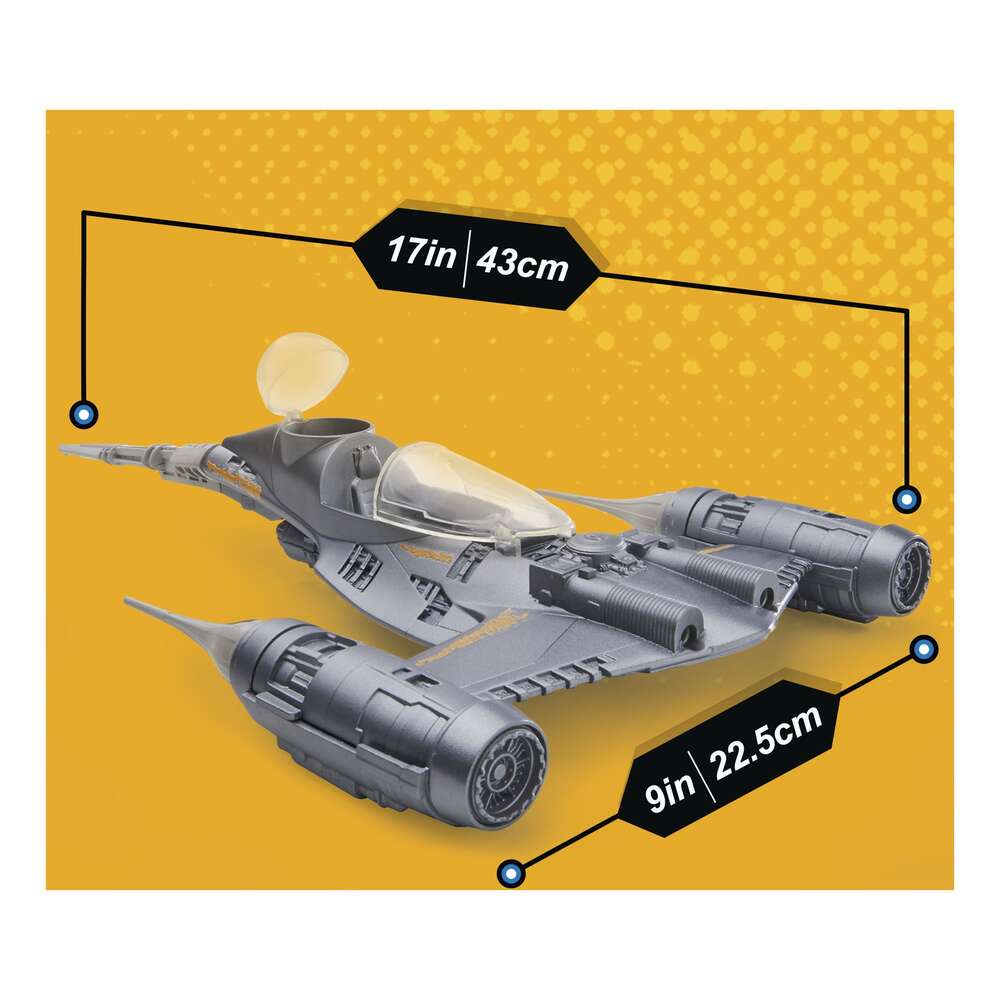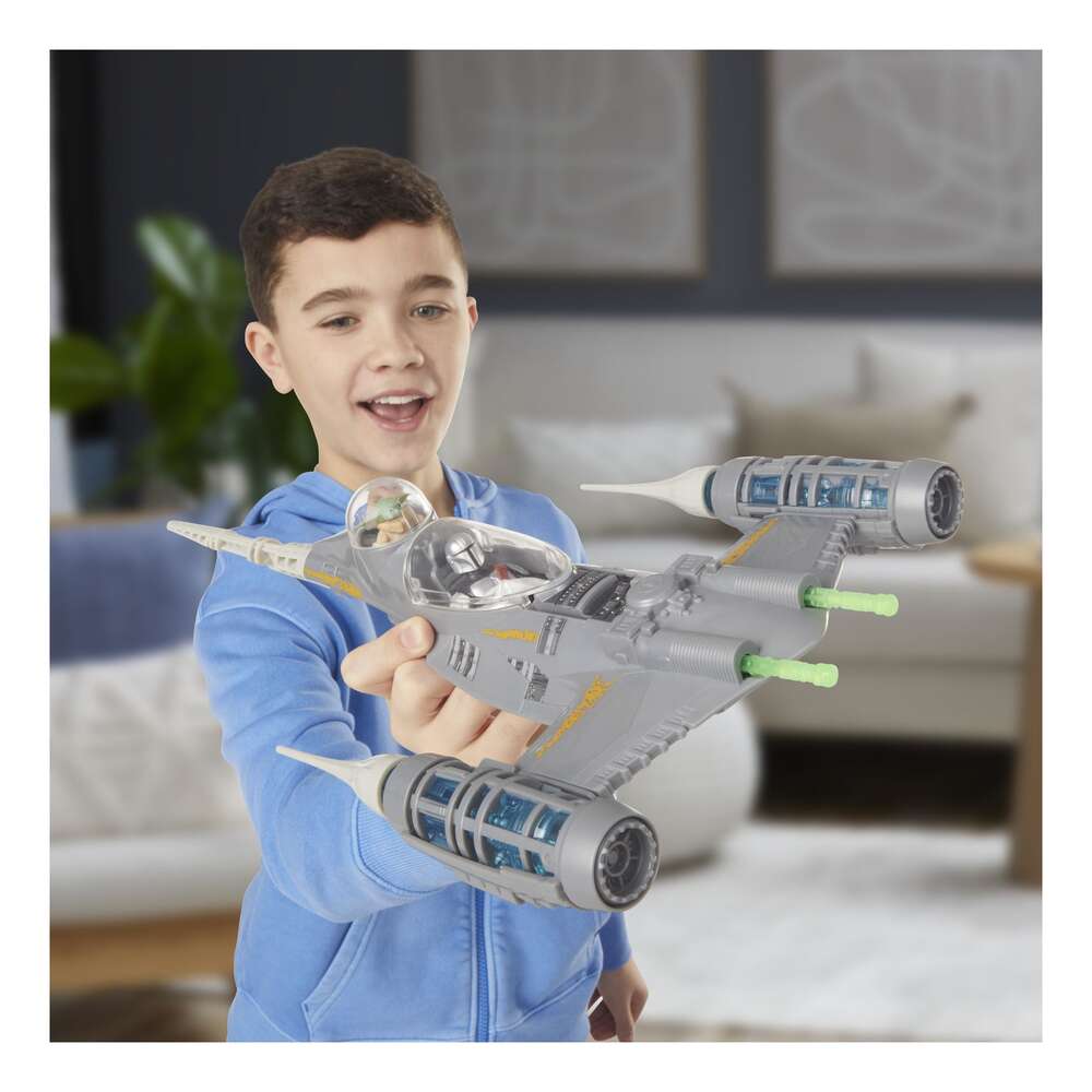 Take playtime to the next level with the Star Wars Epic Hero Series The Mandalorian's N-1 Starfighter set! This Mandalorian toy comes with the N-1 Starfighter, a Mandalorian action figure, a Grogu mini action figure, and 4 accessories. Place the Mandalorian figure in the cockpit, seat Grogu in his very own hatch, and load the 2 included projectiles into the ports on the ship. Now you're ready to take on the galaxy! Launch projectiles with the push of a button and even engage boost mode, which reveals translucent ship parts by sliding the engines on the sides of the ship. Star Wars Epic Hero Series action figures for boys and girls make great gifts for the Star Wars fan in your life. Look for even more figures and vehicles to collect across Hasbro's Epic Hero Series world of play, featuring kid-favorite characters and entertainment-inspired design. (Each sold separately. Subject to availability.) Star Wars products are produced by Hasbro under license from Lucasfilm Ltd. Hasbro and all related terms are trademarks of Hasbro.