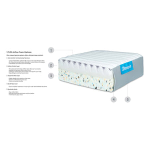 The Stompa S Flex Airflow Foam Mattress is a lovely Medium to firm mattress with some top quality features, such as the air flow technology which helps regulate temperature and moisture levels. With 5 unique comfort layers this mattress is sure to provide a comfortable nights sleep for all growing kids.