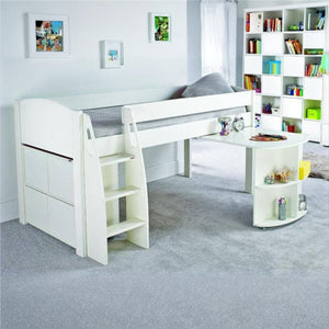 Stompa UNOS Mid Sleeper White Incl Pull Out Desk + 1 Multi Cube With 4 White Doors