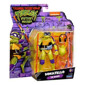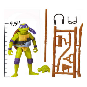 Get ready for the Mutant Mayhem figures and accessories, based on the new CG animated Teenage Mutant Ninja Turtles movie! Donatello is the brains of the Turtles team, making sure they're always outfitted with the latest machines. He may not be the leader of the group, but that doesn't mean he can't be an idol! Now that he's left the sewer, it's time for Donatello to fight for his dream—game-developer by day, K-Pop star by night—alongside his brothers, his biggest (and maybe only) fans. Donatello figure is 4.5” tall and designed to match his movie character. Set includes his signature bo staff and comes in a unique Mutant Mayhem package!