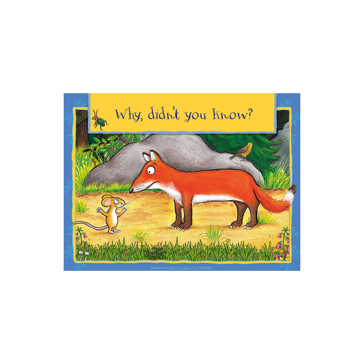 Join Gruffalo, Snake, Fox, Owl and Mouse in this bright and colourful 4 in a box puzzle set, as we hear part of the iconic Gruffalo story from the adorable Mouse's point of view! This 4 in a box is an absolute must have for any Gruffalo fan.