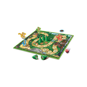 A mouse took a stroll through the deep dark wood. A fox, an owl and a snake saw the mouse and the mouse looked good! Can you help your mouse to get home safely? All you need is a little luck of the dice and a good memory! If you find the image of Gruffalo under the trees you will scare the hungry animals away.