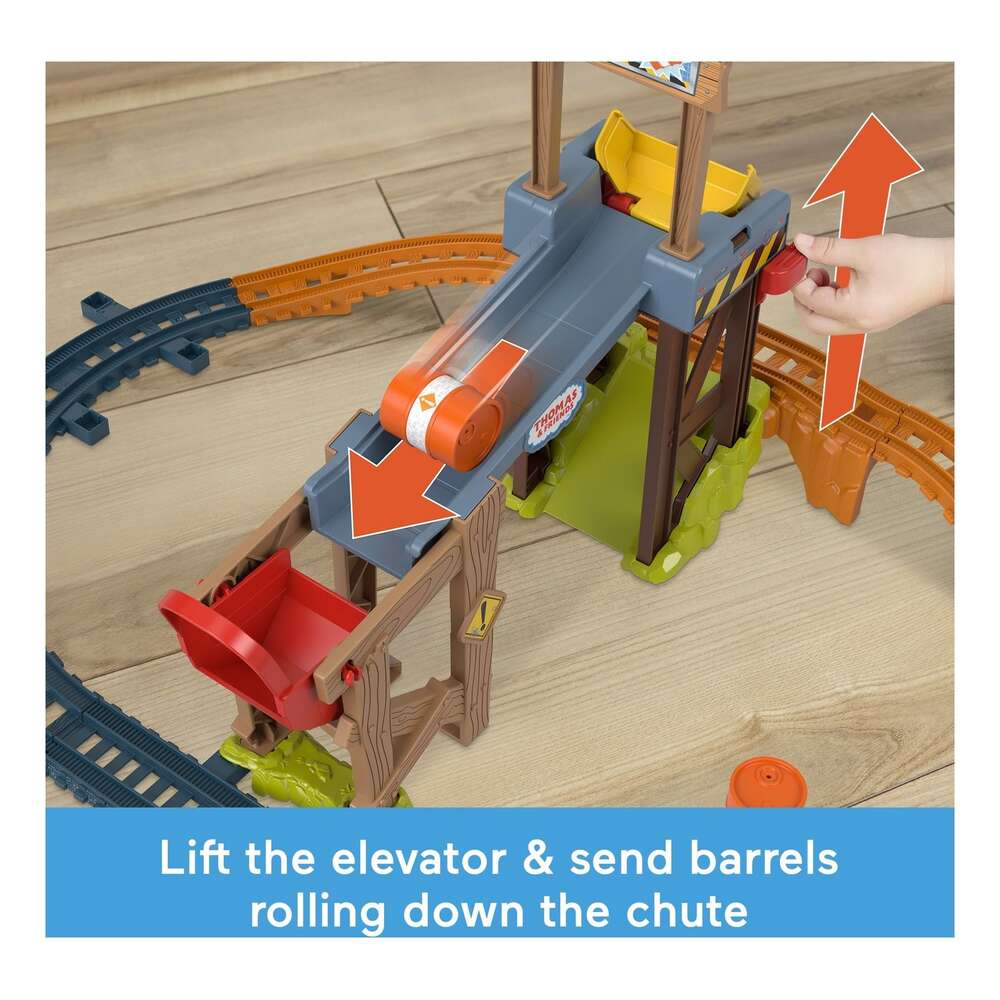 Preschool kids can load up on construction-themed railway play with this motorized toy train & track set from Fisher-Price. Inspired by the Thomas & Friends: All Engines Go series, Diesel’s Lift & Load Construction Set features a battery-powered Diesel engine and a Troublesome Truck that kids can send racing around the track to load, haul and deliver barrels to the construction site. Featuring a cargo elevator, a loading chute, and 5 feet of easy-to-connect track, this construction site train set is barrels of fun for kids! Requires 2 AA batteries, not included. Colors and decorations may vary.
