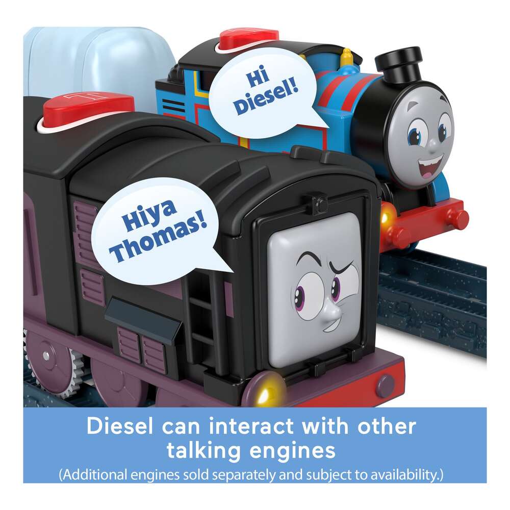 Preschool kids can bring exciting Sodor railway adventures to life with these Thomas & Friends talking motorized toy trains from Fisher-Price. Each battery-powered engine is styled to look like a different character from the show and features real character phrases and train sounds! Just press the button on top of the engine to send the train racing along with fun sounds and phrases. Kids can collect all the talking engines to hear them recognize and interact with each otherjust like they do in the Thomas & Friends: All Engines Go! series! (Each train sold separately and subject to availability.) Requires 2 AAA batteries.