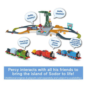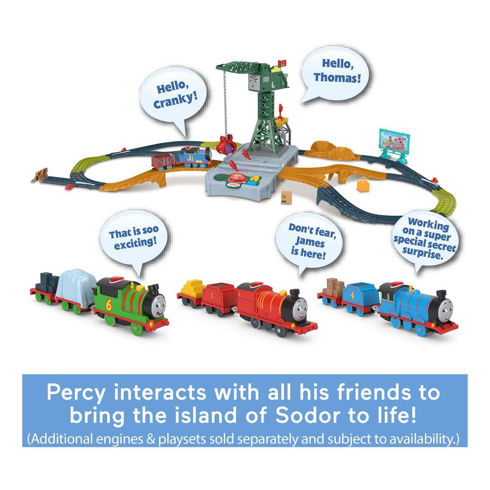 Preschool kids can bring exciting Sodor railway adventures to life with these Thomas & Friends talking motorized toy trains from Fisher-Price. Each battery-powered engine is styled to look like a different character from the show and features real character phrases and sounds! Just press the button on top of the engine to send the train racing along with fun sounds and phrases. Kids can collect all the talking engines to hear them recognize and interact with each otherjust like they do in the Thomas & Friends: All Engines Go! series! (Each train sold separately and subject to availability.) Requires 2 AAA batteries.