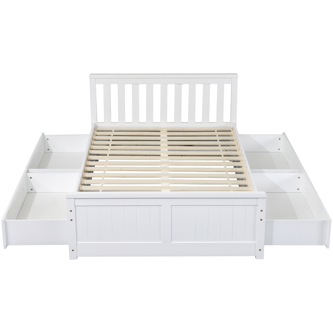 4FT Timeless White Kids Storage 4 Drawer Bed:
