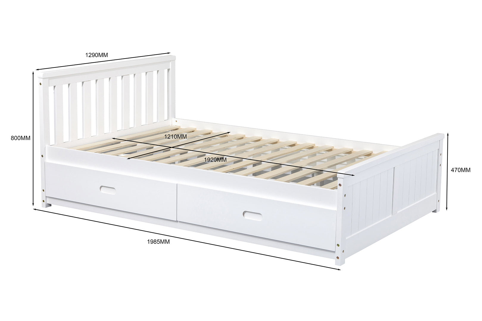 - The 4ft Small Double Timeless White Kids Storage Bed accommodates a 120 x 190cm small double mattress