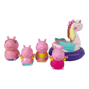 End the day just like Peppa Pig with loud snorts and laughter! It’s time to add bath time to their favourite list of things to do: Daddy Pig, Mummy Pig and their two little ones, Peppa Pig and George have joined together to make up this colourful and fun squirter playset. Each little figure is perfect for little hands to handle. A gentle underwater squeeze is all they need to fill up with water, ready to squirt and splash. Also included in this set is Peppa’s magical unicorn bath float.