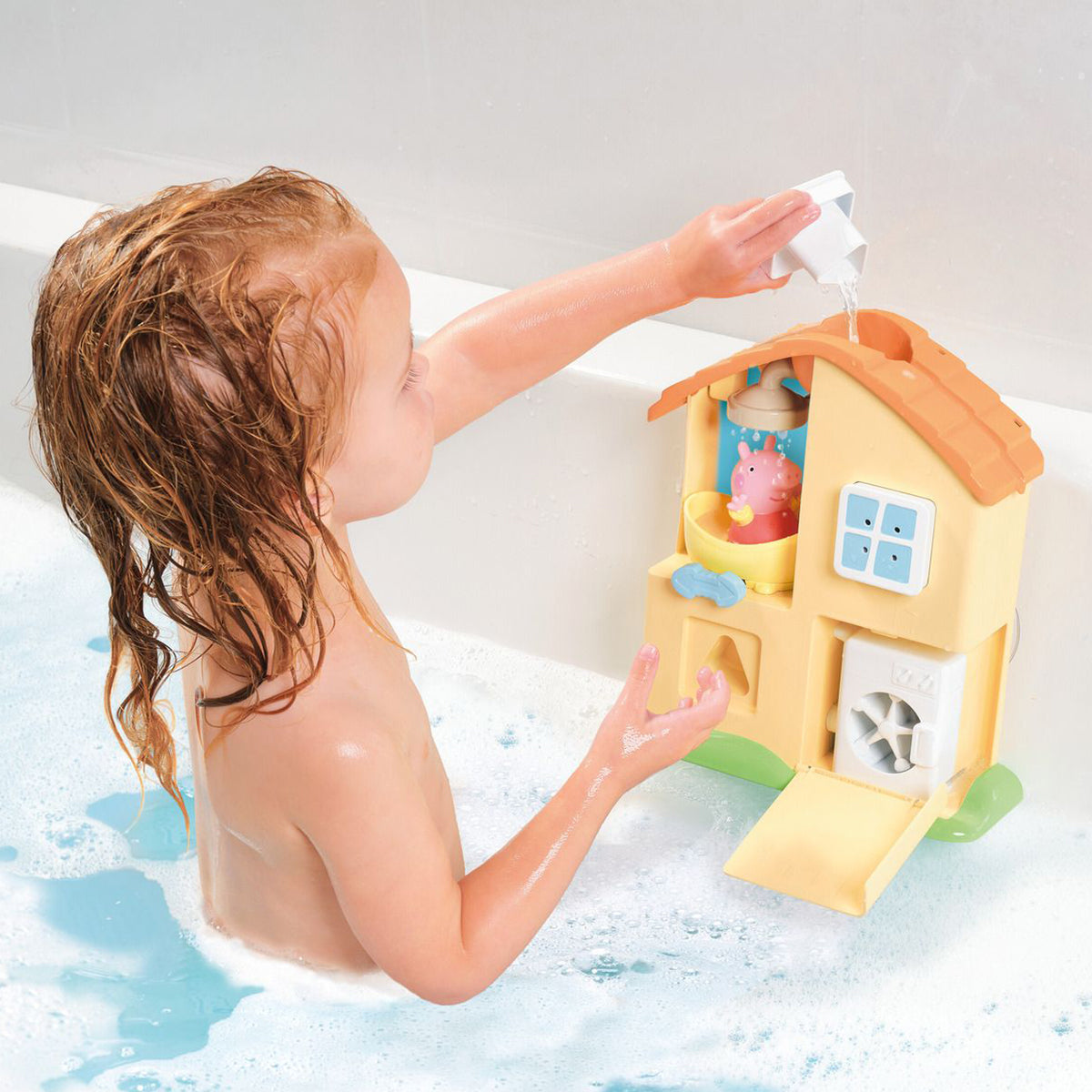 PEPPA PIG BATH TIME FUN: Get set for hours of fun at bath time with Peppa's House Bath Playset, packed with features, including a bath and working shower upstairs and a spinning washing machine downstairs.