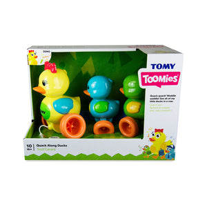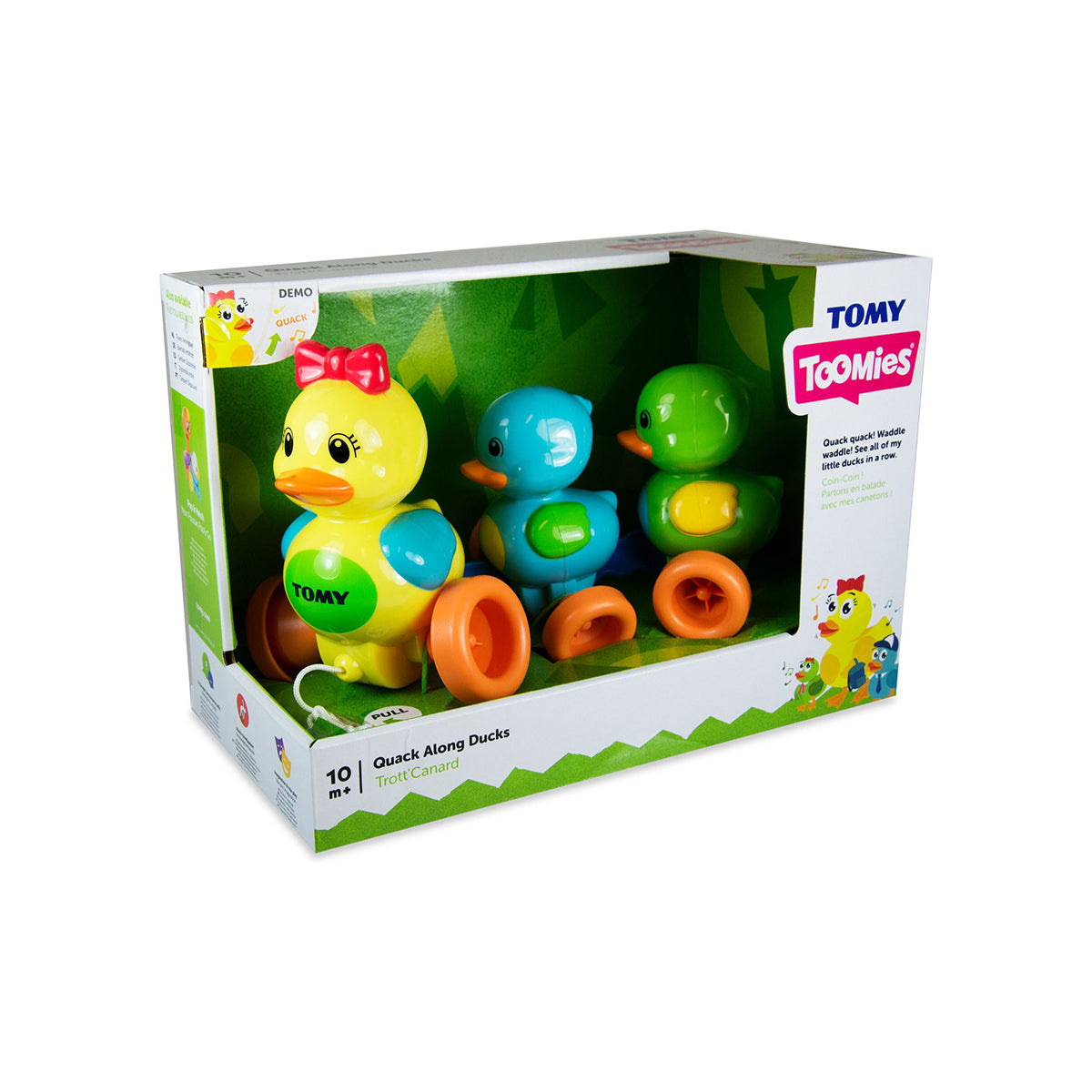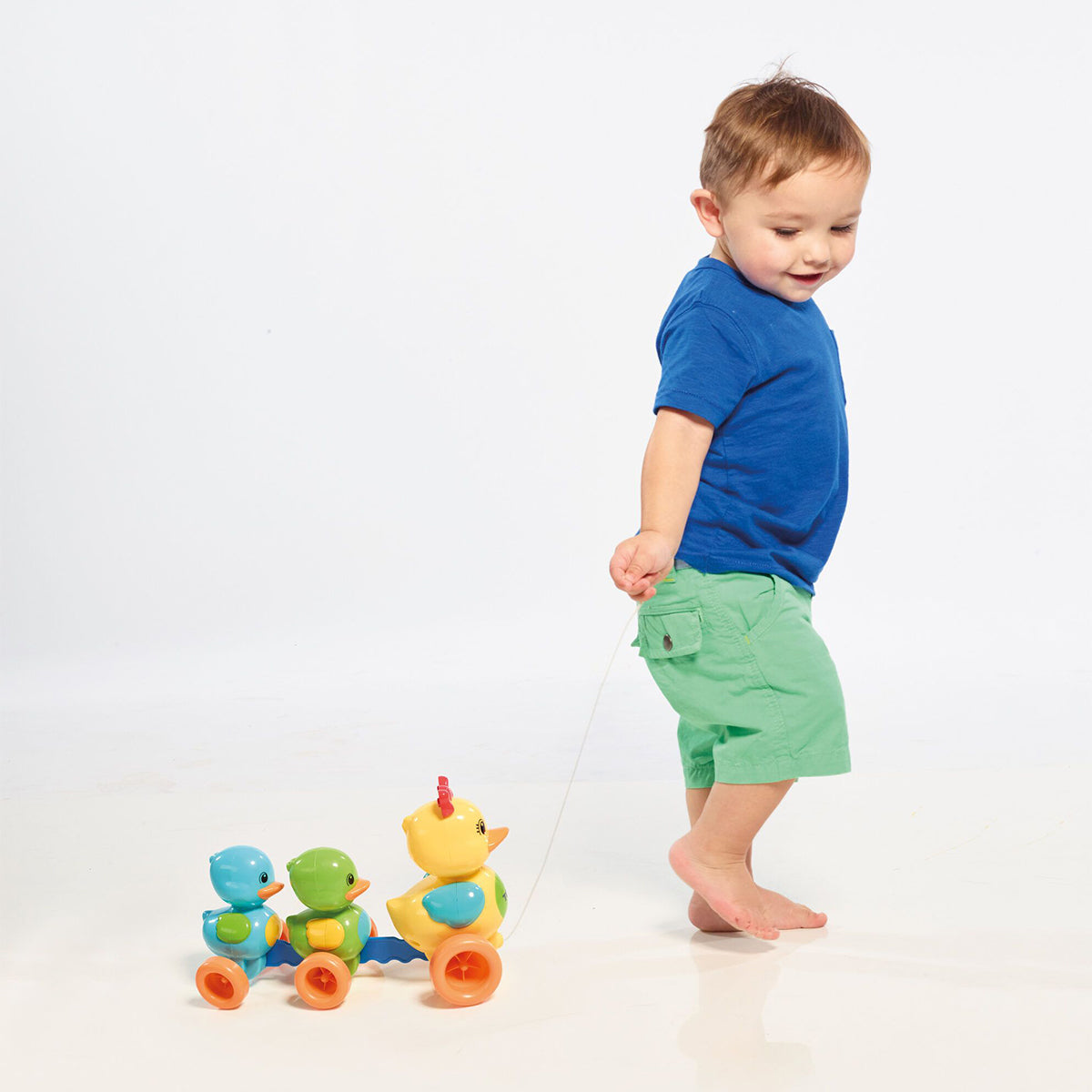Quack quack! Waddle waddle! Meet all of my little ducks in a row. Let's have lots of fun pulling my ducks. What adventure will we go on today? We love to quack and waddle. Suitable from 10 months +. Batteries Included.
