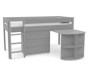 Uno Grey Midsleeper With Pull Out Desk And 3 Drawer Chest
