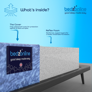 The Waterproof Reflex Foam 5 Zone Support Mattress combines a resilient, water-resistant, and breathable fabric with a supportive reflex foam base — delivering long-lasting comfort and performance.