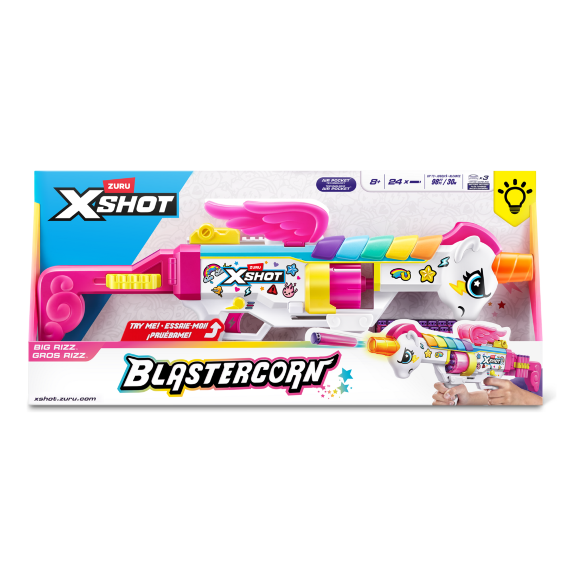 - XSHOT Blastercorn with magical unicorn-themed design.