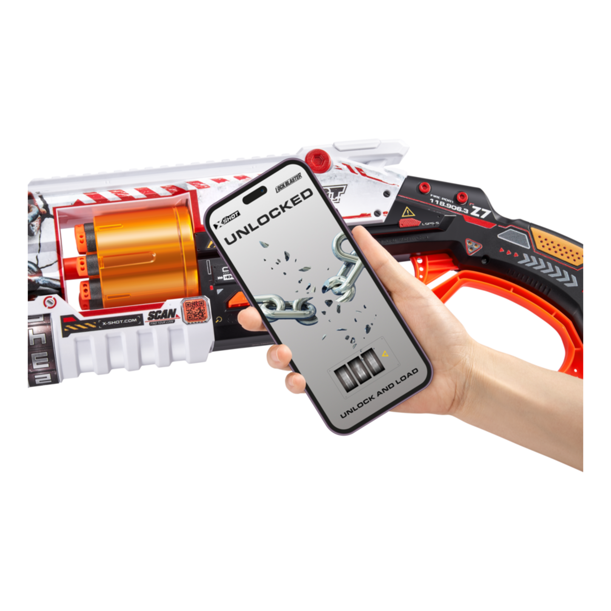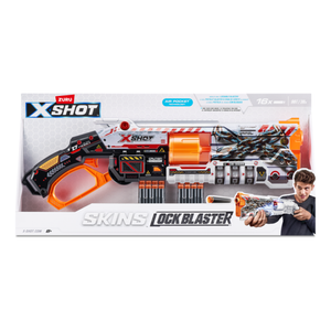 The XSHOT Skins Lock Blaster puts the power in your hands! Each Lock Blaster comes with a QR code to discover your unique lock combination. Unlock your blaster to start the fun! The Lock Blaster has a 8 dart rotating barrel to blast through darts in seconds and hit targets up to 27m / 90 feet away! When the battles over, lock your blaster and no one else will be able to use it. Choose different, choose XSHOT Skins.